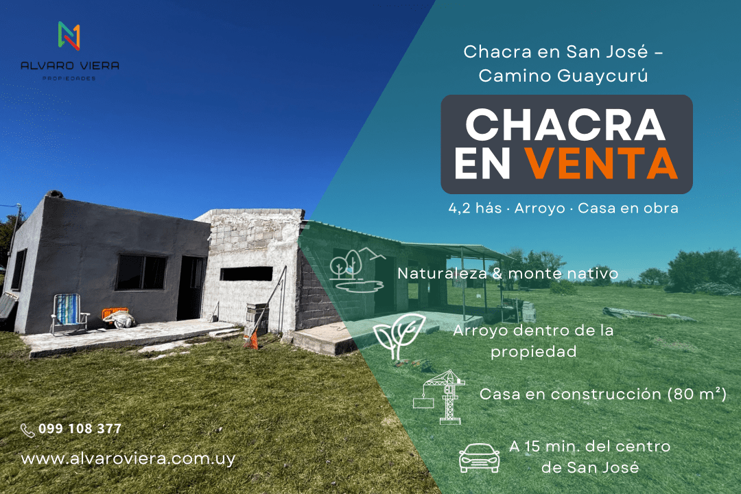 Hermosa chacra ubicada en un entorno natural privilegiado, a solo 15 minutos de la ciudad de San José por Camino Guaycurú.
