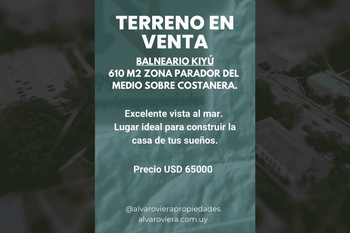 📍 Terreno de 610 m² ubicado en Balneario Kiyú, sobre la costanera, zona Parador del Medio.
